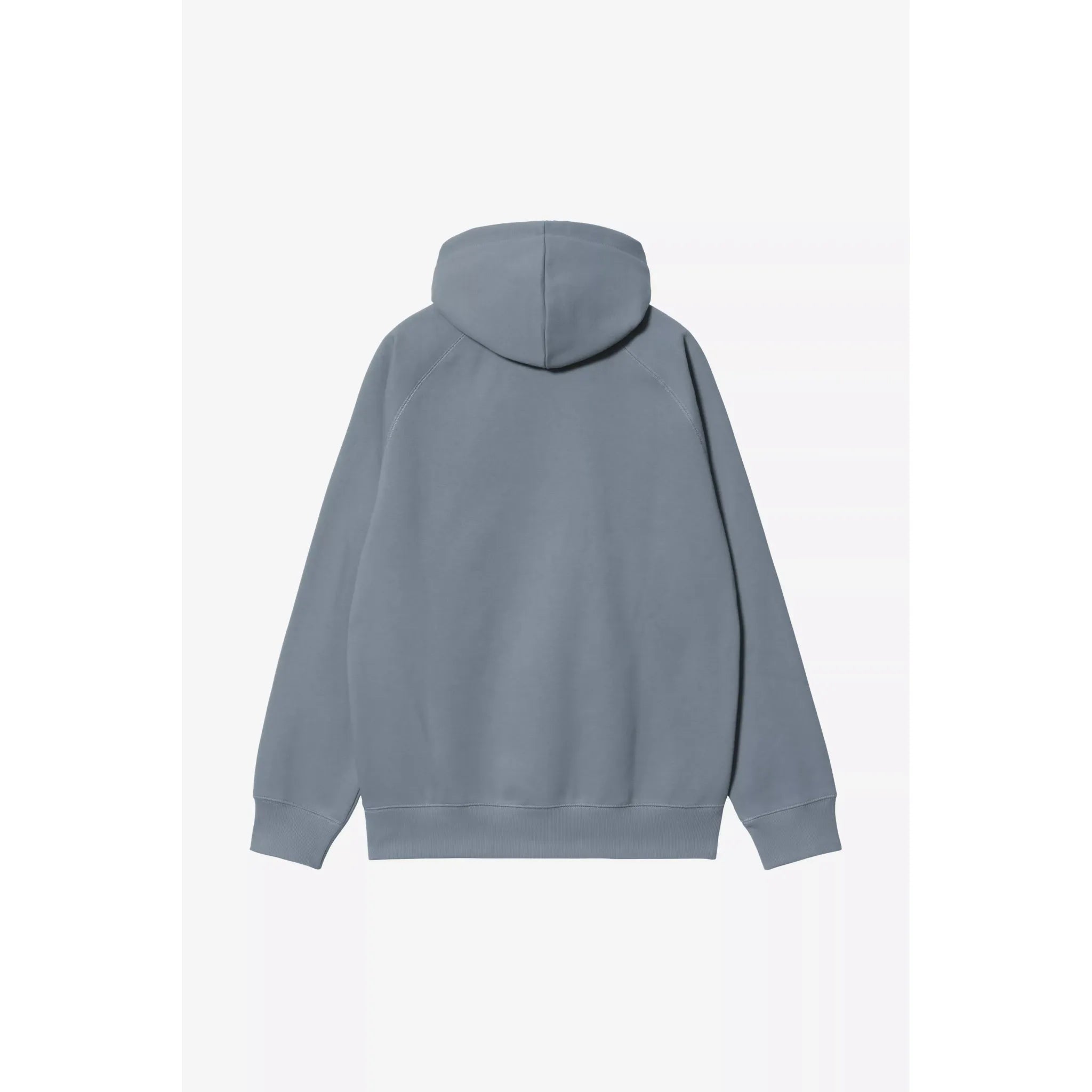 The Carhartt WIP Hooded Chase Sweat offers a durable blend of 58% cotton and 42% polyester with a heavyweight polycotton fabric that is brushed for a soft fleece-like interior. Designed with raglan sleeves and flatlock stitching, it ensures enhanced mobility and reinforced seams. The regular fit provides comfortable wear, while the kangaroo pocket adds practical storage. A subtle embroidered 'C' logo on the left sleeve completes this expertly crafted sweatshirt.