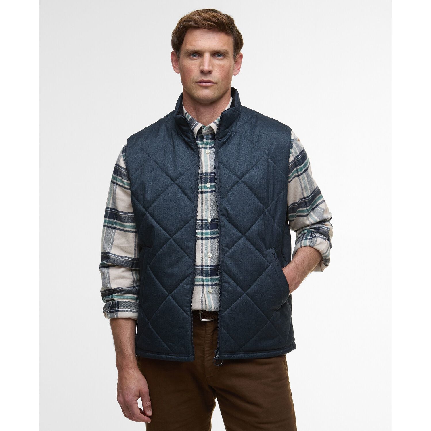 The Barbour Winter Finn Gilet offers reliable warmth with its four-inch box quilting and durable brushed fabric, ensuring comfort during unpredictable weather. Expertly designed, it features an 8-wale cord collar for added coziness, secure zip fastening, and practical welt pockets for essentials. This gilet combines timeless style with functional details, making it an ideal choice for brisk walks and layered looks.