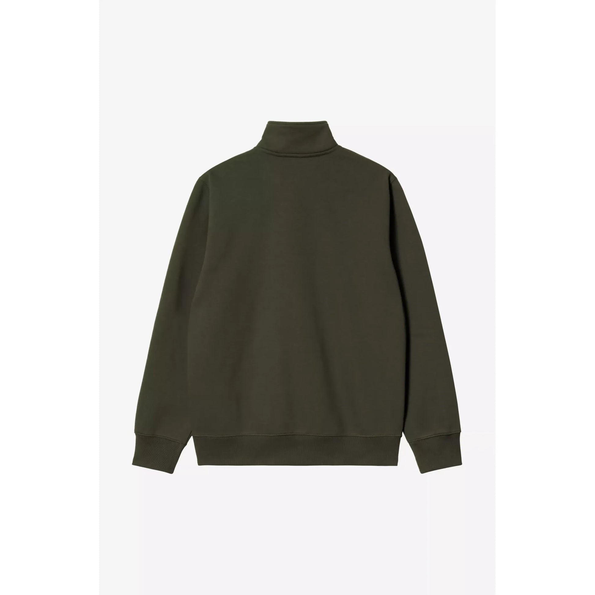The Carhartt WIP Chase Neck Zip Sweat combines durability and comfort with its heavyweight polycotton fabric, featuring a brushed fleece backing for added warmth. Designed with a regular fit and raglan sleeves, it ensures ease of movement. The high neck zip adds versatility and coverage, while flatlock stitching enhances durability. An embroidered 'C' logo on the left sleeve offers a subtle signature detail, making this sweatshirt both functional and stylish for everyday wear.