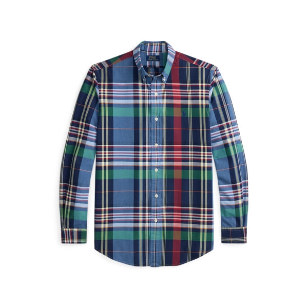 This Ralph Lauren Custom Fit Plaid Shirt features a classic button-down collar and buttoned placket for a refined look. Crafted from 100% cotton, it provides exceptional comfort and breathability. Long sleeves with buttoned barrel cuffs offer adjustable fit, while the split back yoke with a box pleat enhances mobility. The signature embroidered Pony on the left chest adds a distinctive touch, combining timeless style with expert tailoring for a versatile wardrobe essential.