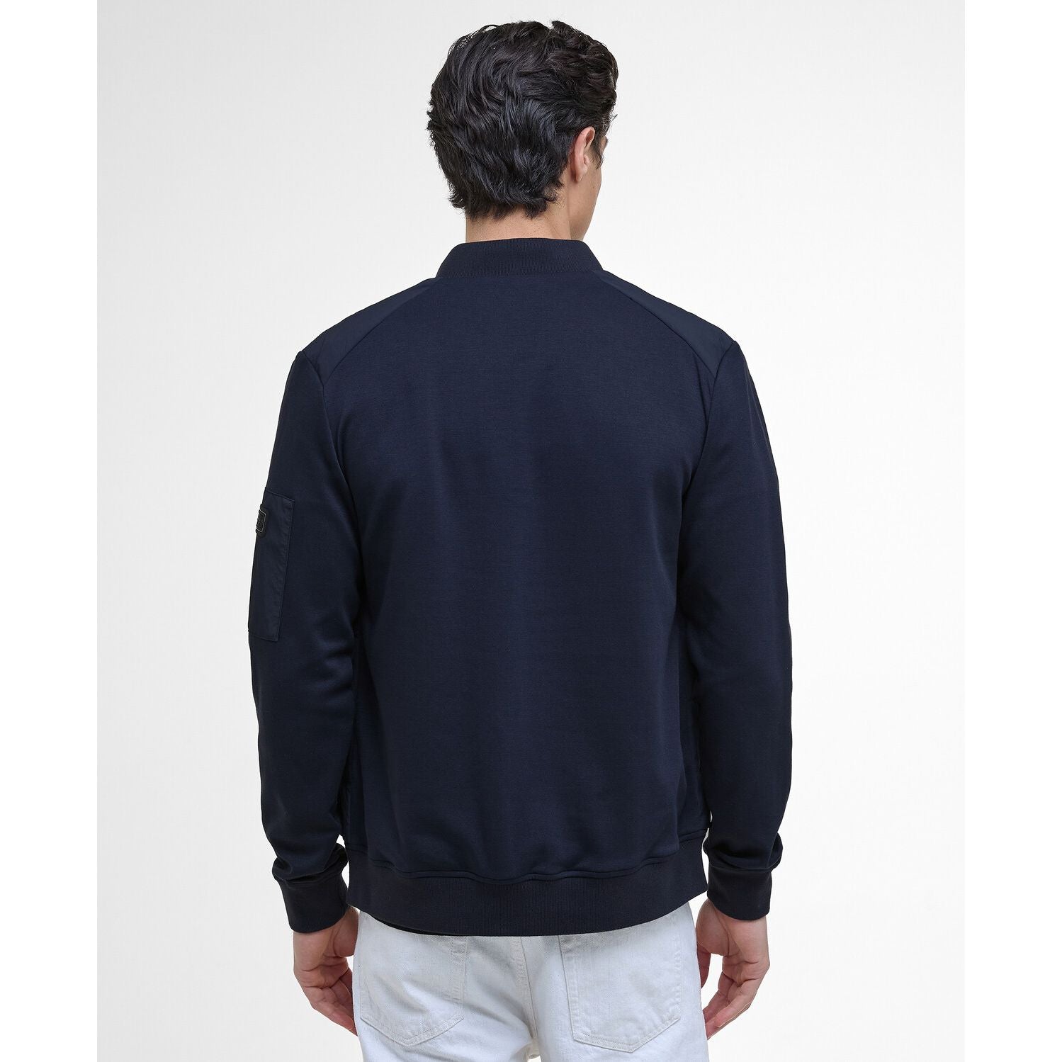 The Barbour International Holmes Bomber Jacket combines classic bomber style with practical features. Crafted from double knit sweatshirt fabric, it offers a long sleeve design with a full baffle quilted bodice for added warmth. The double zip front fastening ensures easy wear and adjustability, while ribbed cuffs and hem maintain a snug fit, preserving its traditional silhouette. Ideal for those seeking both comfort and style in cooler weather.