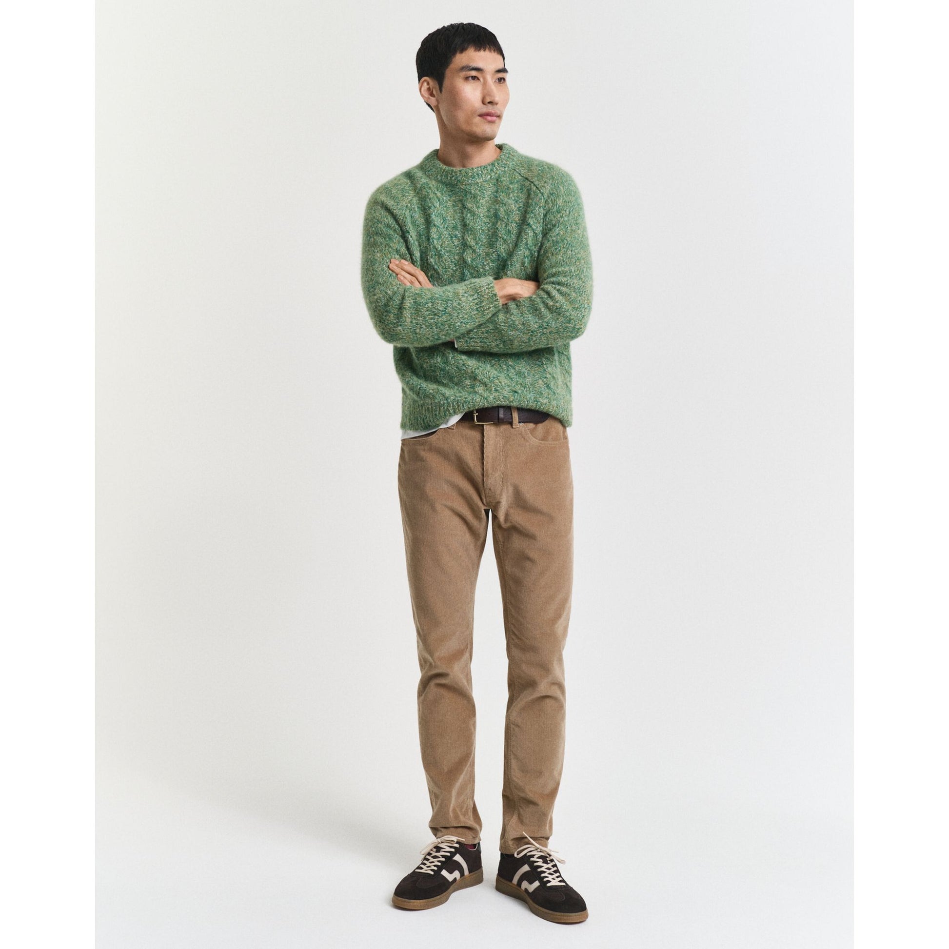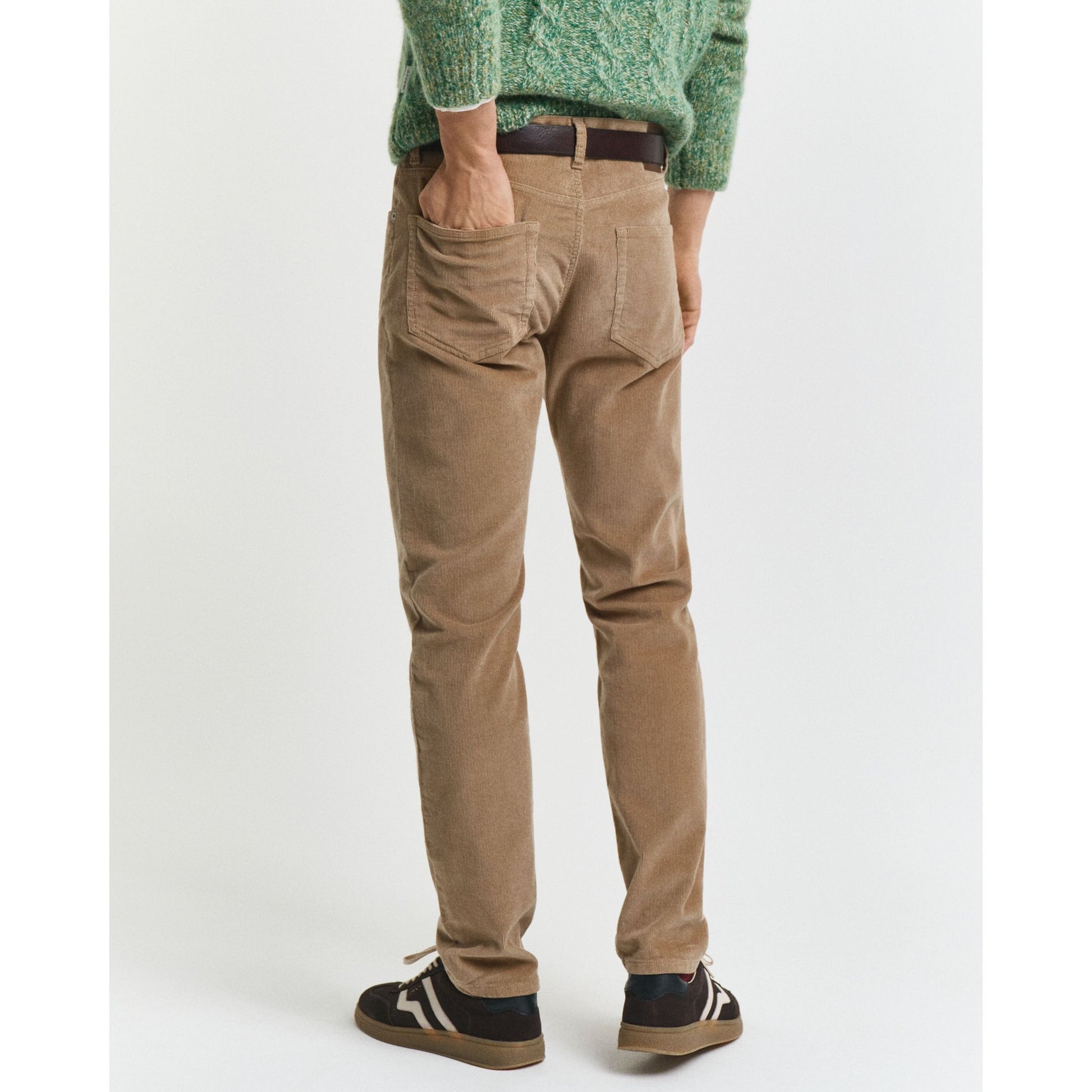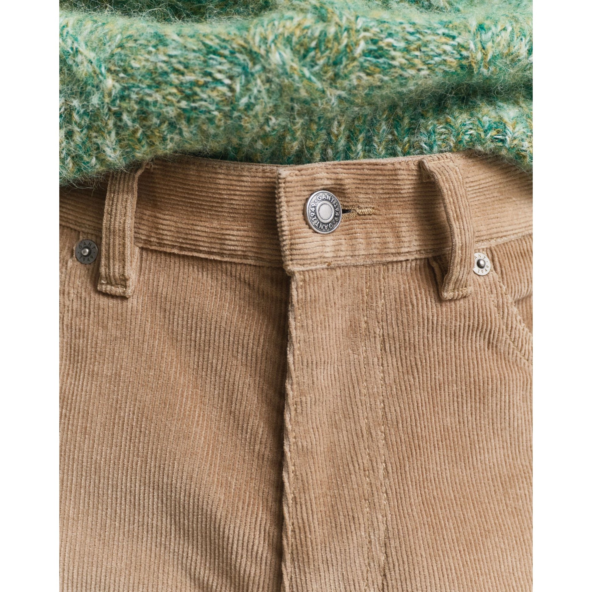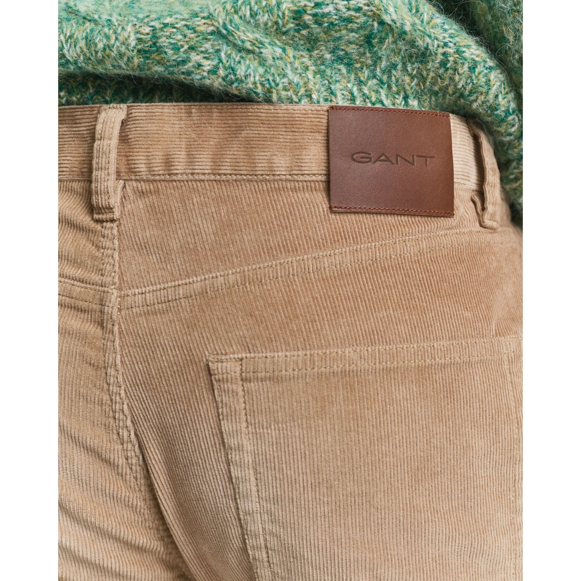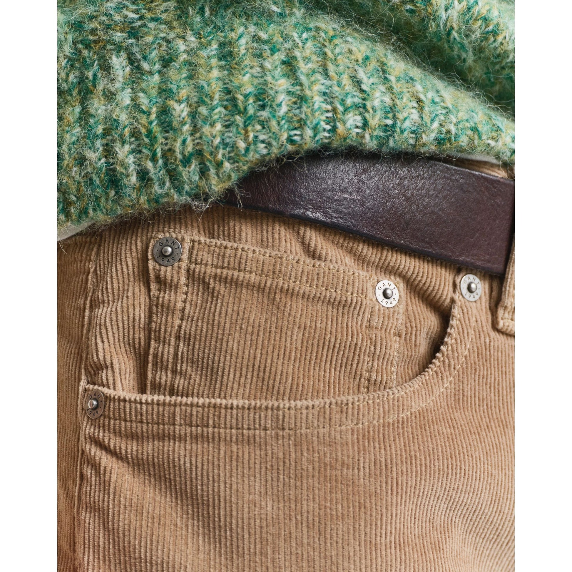 These Gant Regular Fit Cord Jeans combine tactile corduroy fabric with comfort stretch for ease of movement and durability. Designed in autumnal-winter hues, they offer versatile styling options. The slim fit, mid-rise waist, and tapered leg create a tailored silhouette, while classic 5-pocket detailing, branded buttons and rivets, zip fly, and a branded leather label add refined finishes. Ideal for a polished yet comfortable casual look.
