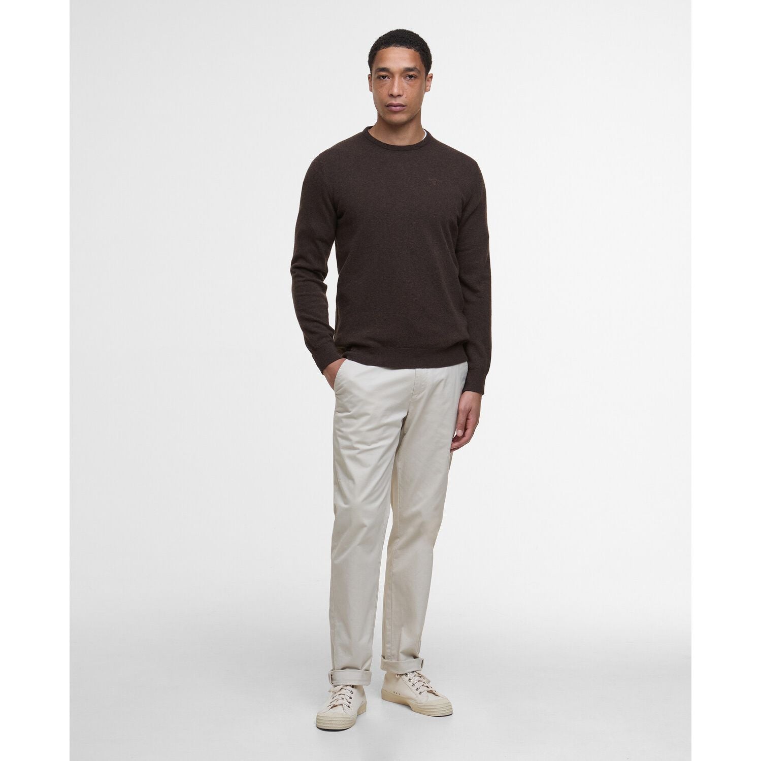 The Barbour Essential Lambswool Crew-Neck is crafted with 100% supersoft lambswool for a luxurious feel. Its rib stitch detailing and comfortable fit provide a stylish edge, while tonal Barbour embroidery adorns the sleeve. Enjoy a sophisticated look and feel with this timeless piece.