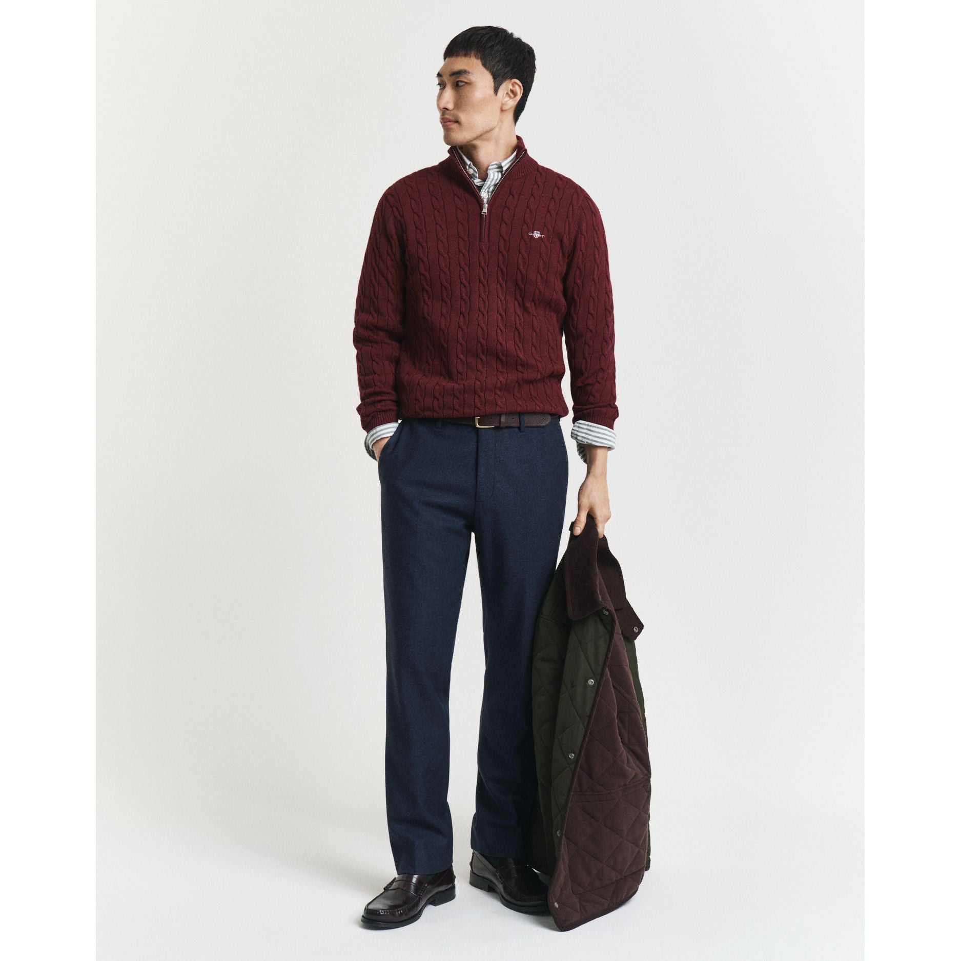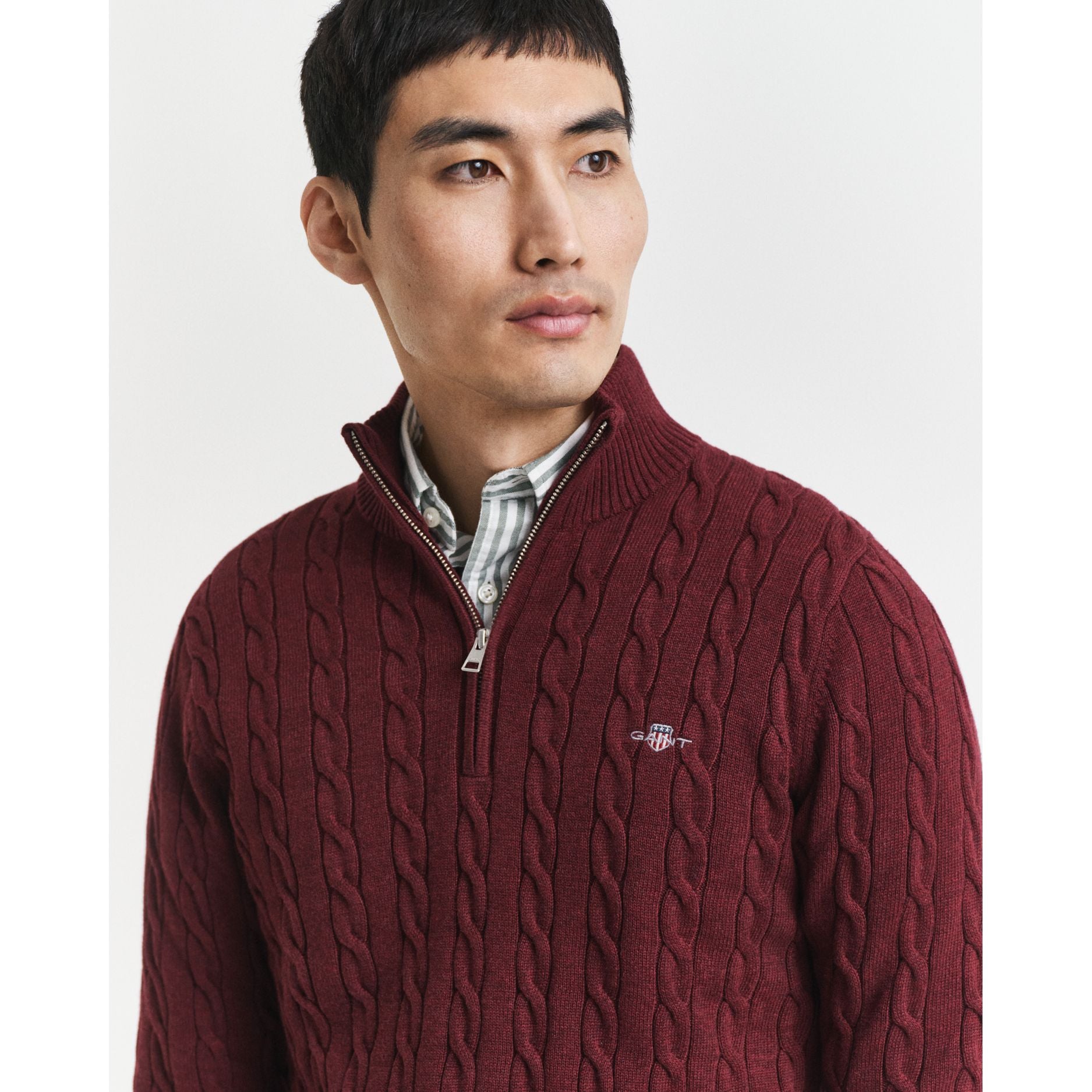 The Gant Cotton Cable Half Zip Sweat features a regular fit and a cable knit structure for a classic and comfortable look. The half-zip design adds versatility, while the Gant graphic embroidered at the chest adds a touch of luxury. Perfect for any wardrobe.