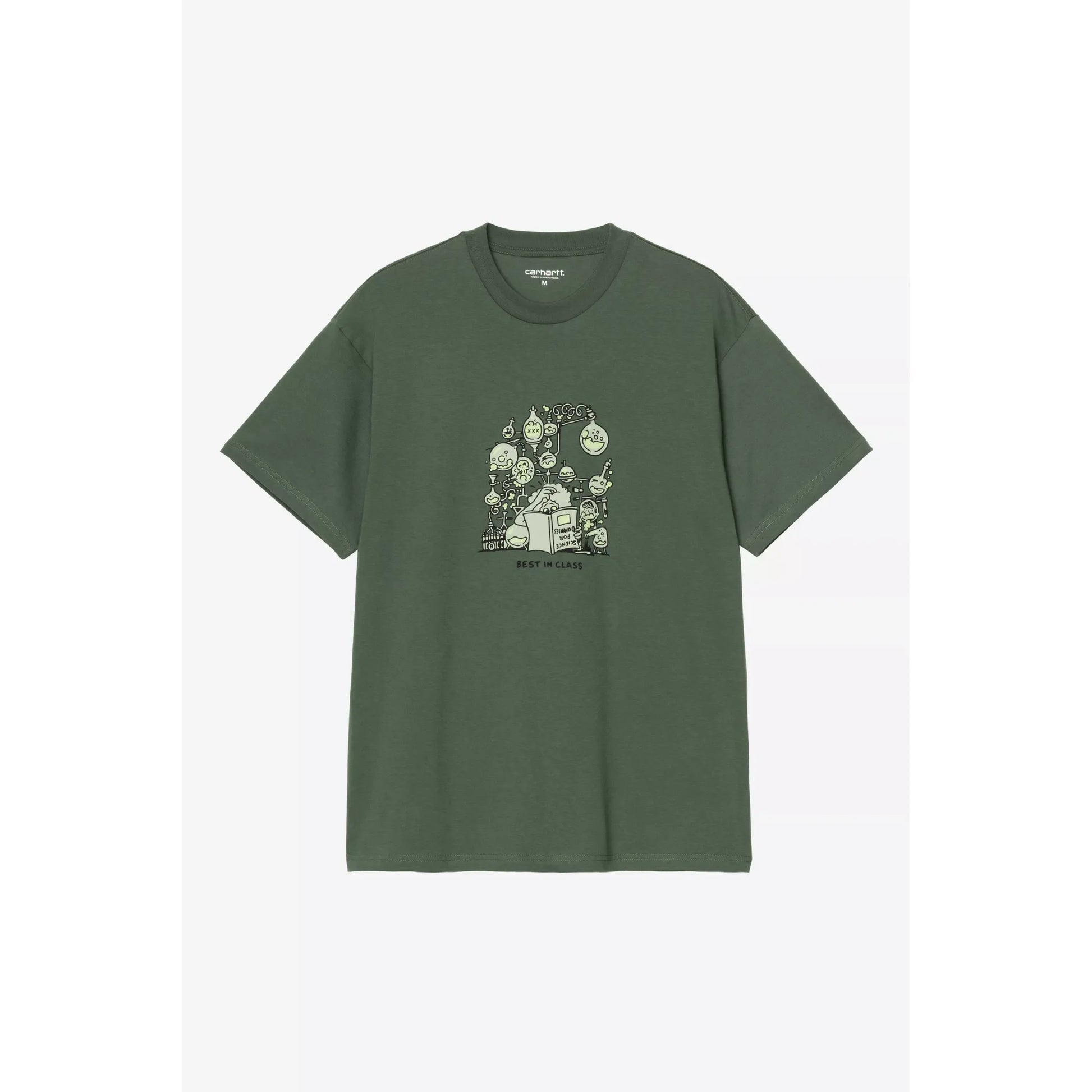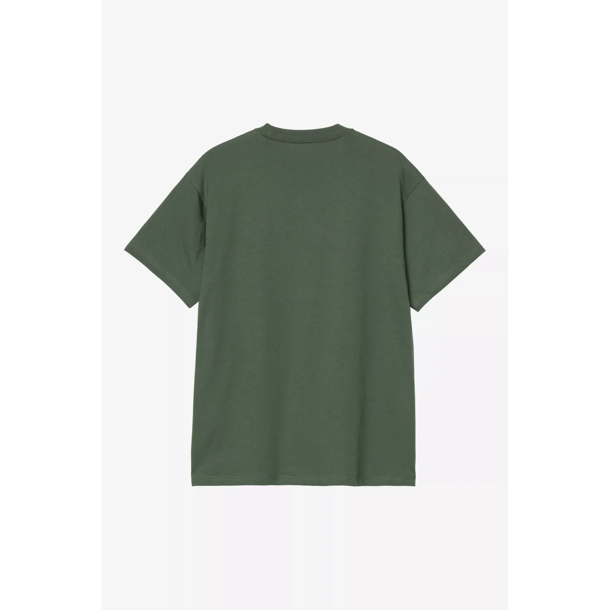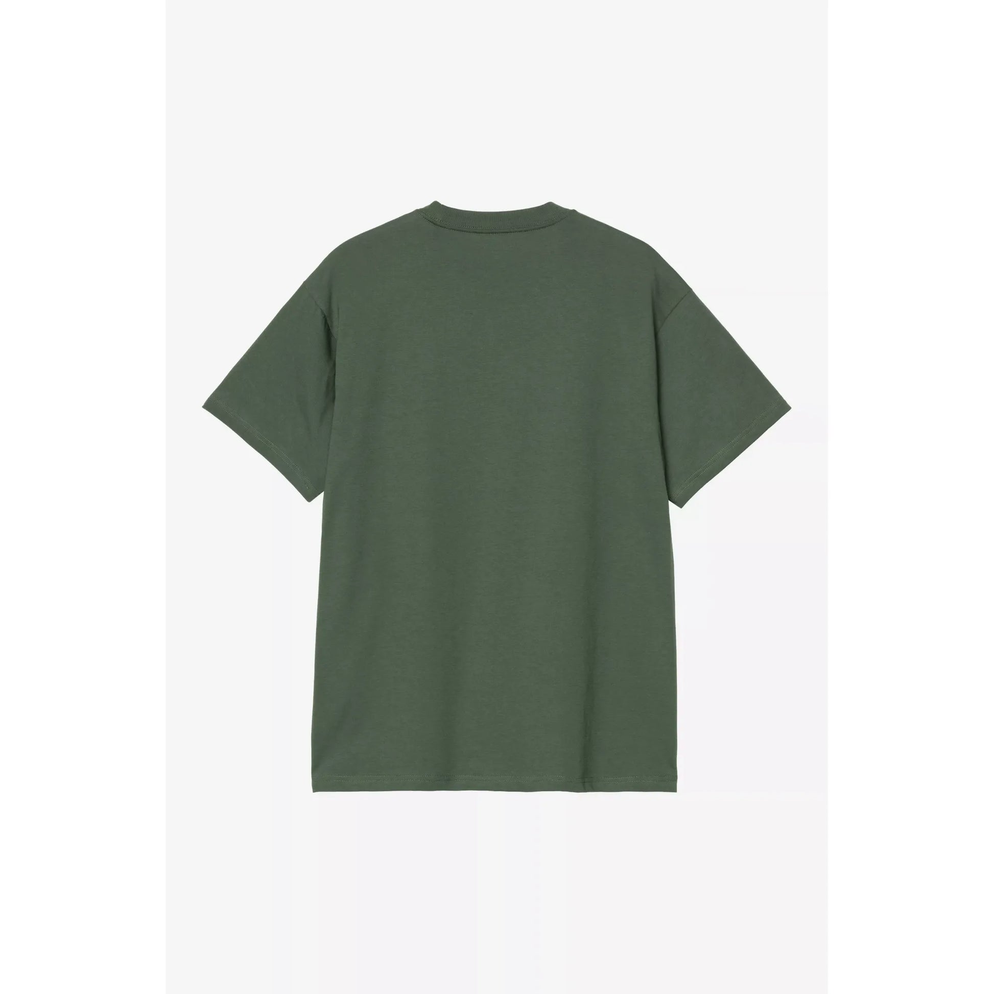 The Carhartt WIP Beaker T-Shirt features a loose fit crafted from midweight organic cotton jersey, ensuring comfort and breathability. Its standout graphic print on the front adds a distinctive visual appeal, blending casual style with durable quality. Ideal for those seeking a relaxed yet refined look with sustainable fabric choice.