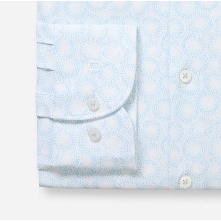 Introducing our Olymp Level 5 Printed Shirt, designed for a body fit that will enhance your physique. Our Royal Kent collar is perfect for both casual and formal occasions, accompanied by a long sleeve for added versatility. Made with Italian button panel and darted at the back for a tailored look. Includes button on sleeve slit and shape-retaining fabric.
