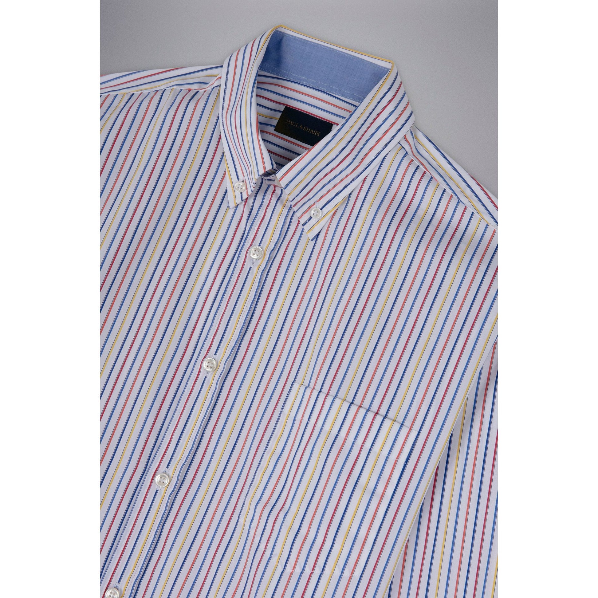 This Paul & Shark shirt features a button closure, cotton poplin fabric, a shirt pocket, and long sleeves. Made with quality materials and a classic design, this shirt offers both style and functionality for any occasion. Stay comfortable and polished all day long.