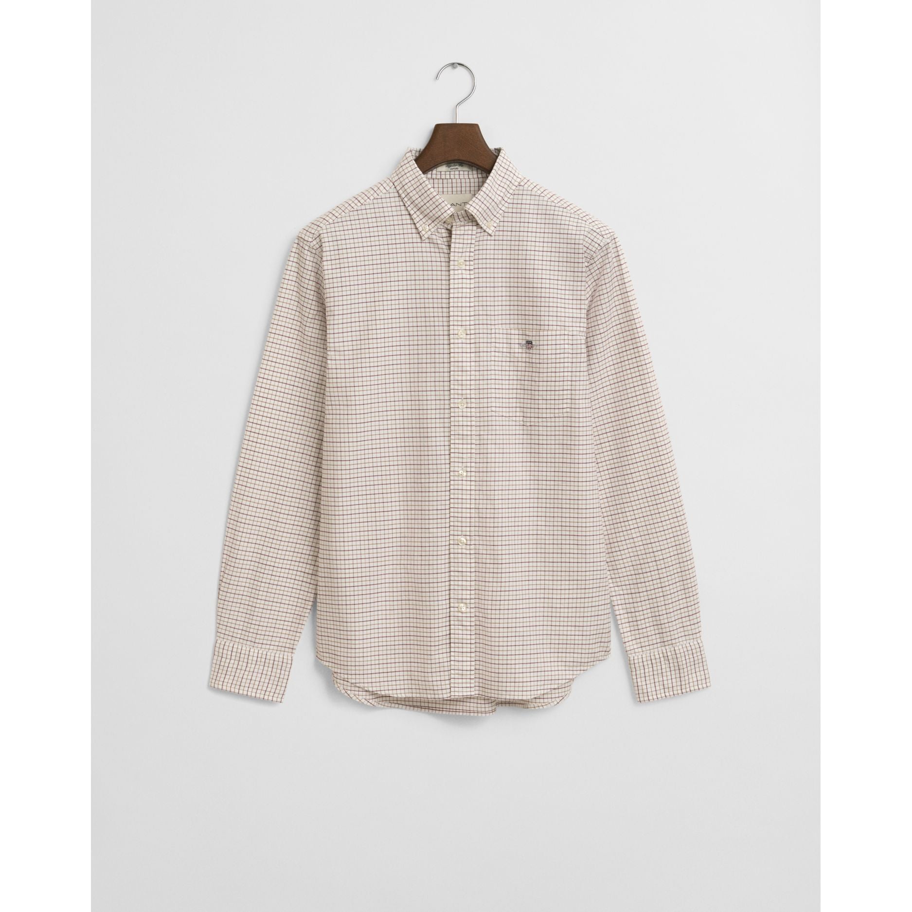 The Gant Regular Fit Oxford Check Shirt is crafted from soft cotton Oxford weave fabric, inspired by our classic shirting archives. Designed with a regular fit and an all-over tattersall pattern, it features a button-down collar, adjustable cuffs, and a box pleat enhanced by our signature locker loop at the back. Finished with a subtle embroidered GANT shield on the chest pocket, this shirt balances timeless style with functional detailing for everyday wear.