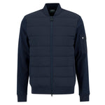 The Barbour International Holmes Bomber Jacket combines classic bomber style with practical features. Crafted from double knit sweatshirt fabric, it offers a long sleeve design with a full baffle quilted bodice for added warmth. The double zip front fastening ensures easy wear and adjustability, while ribbed cuffs and hem maintain a snug fit, preserving its traditional silhouette. Ideal for those seeking both comfort and style in cooler weather.