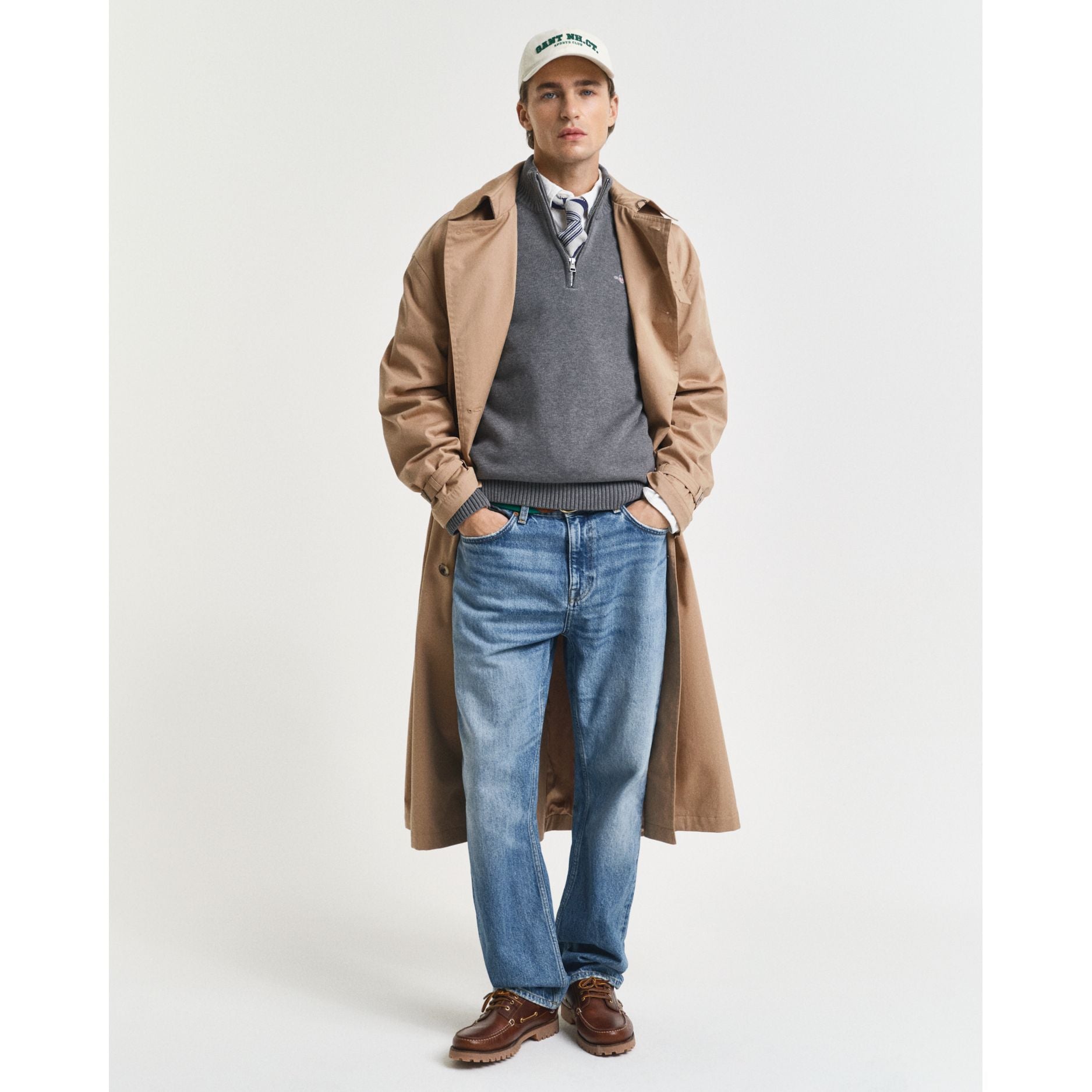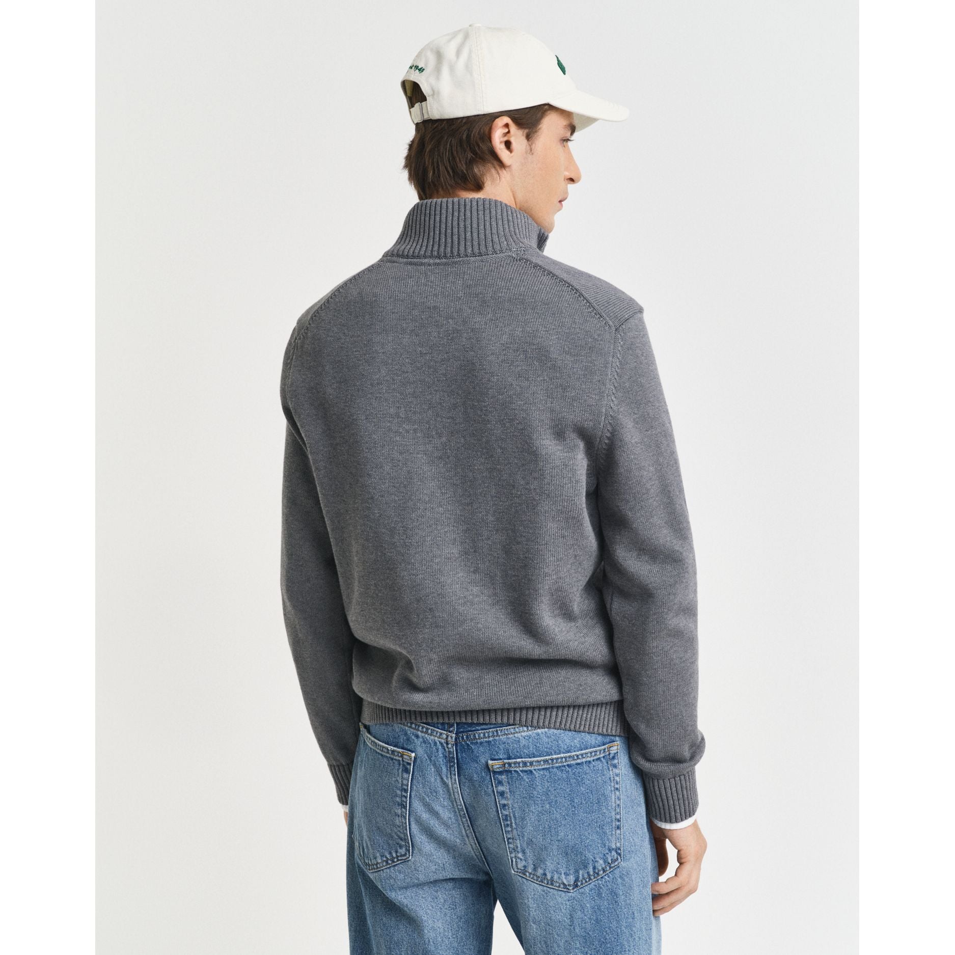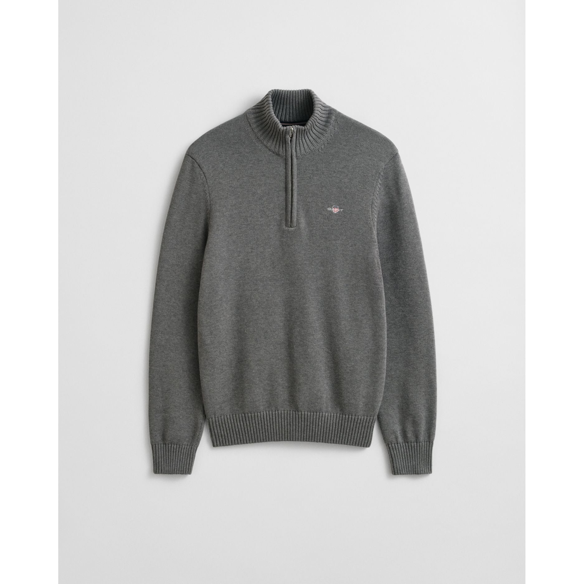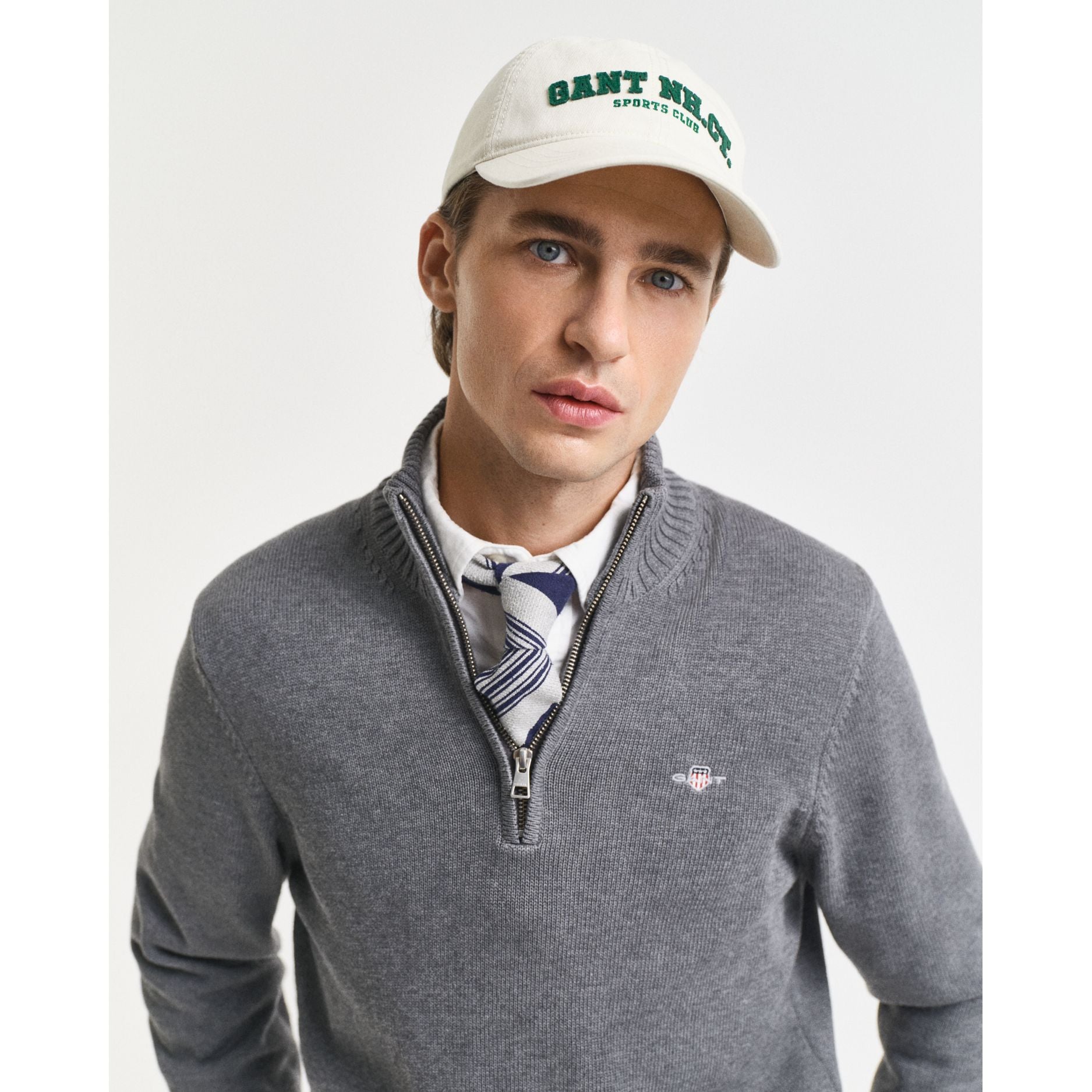 Stay comfortable and stylish with the Gant Casual Cotton Half Zip. This regular-fitting top features a half-zip collar and ribbed hem and sleeve cuffs, offering a secure fit that won't bunch or constrict. Show off your signature style with the GANT graphic embroidered on the chest.