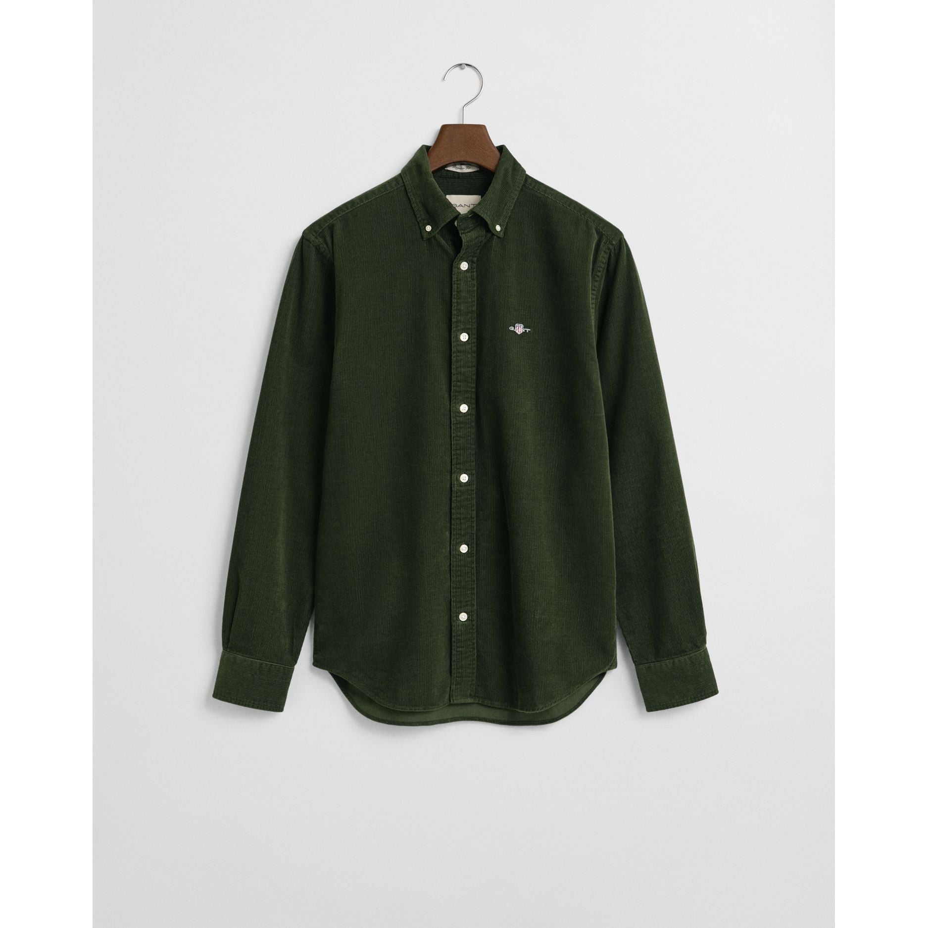 Crafted from premium cotton corduroy, the Gant Regular Corduroy Shirt offers a refined yet durable option for transitional weather. Its regular fit ensures comfort and ease of movement, while thoughtful details like a button-down collar, adjustable sleeve cuffs, and a curved hem enhance versatility and style. Practical features such as recycled polyester buttons, a box pleat, and a locker loop at the back provide both function and subtle sophistication. Finished with the distinctive GANT archive shield embroidery, this shirt balances classic craftsmanship with contemporary appeal.
