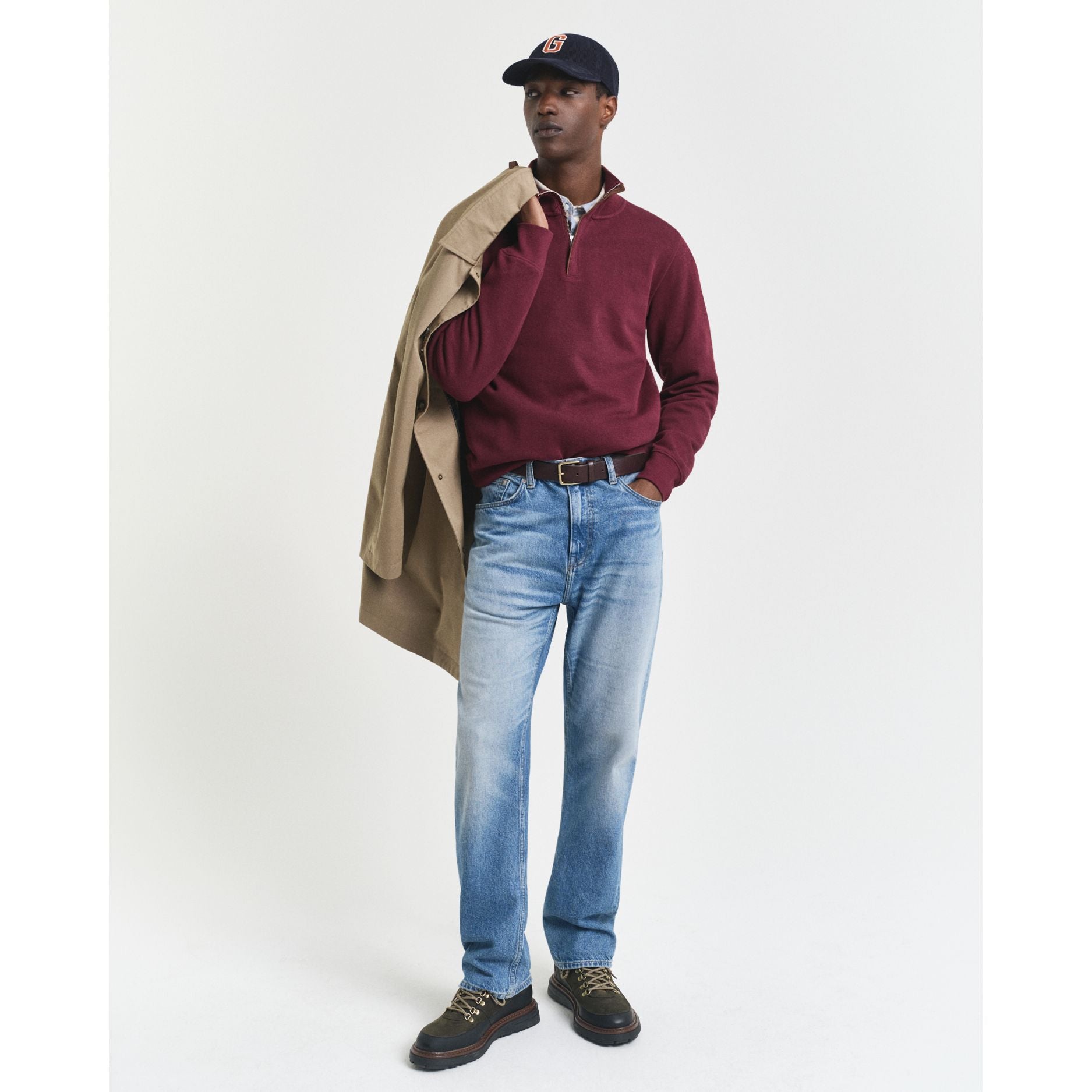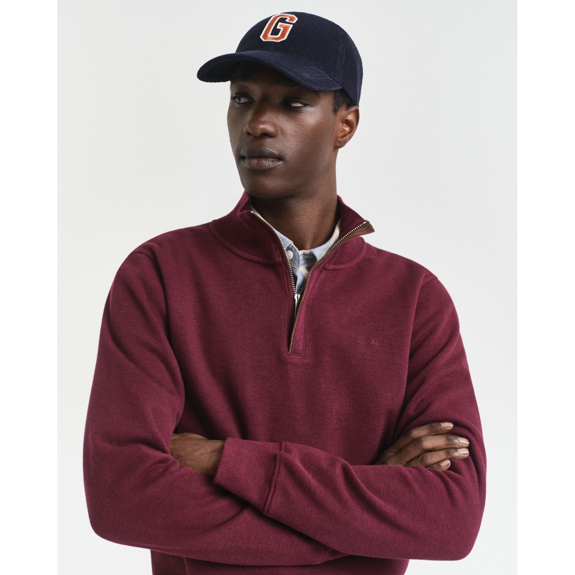 Enhance your style with the Gant Sacker Rib Half Zip. Crafted from premium cotton, it features a regular fit, half-zip closure, and faux suede detailing. The GANT logo embroidery at the chest adds a touch of sophistication. Perfect for adding a classic flair to your wardrobe.